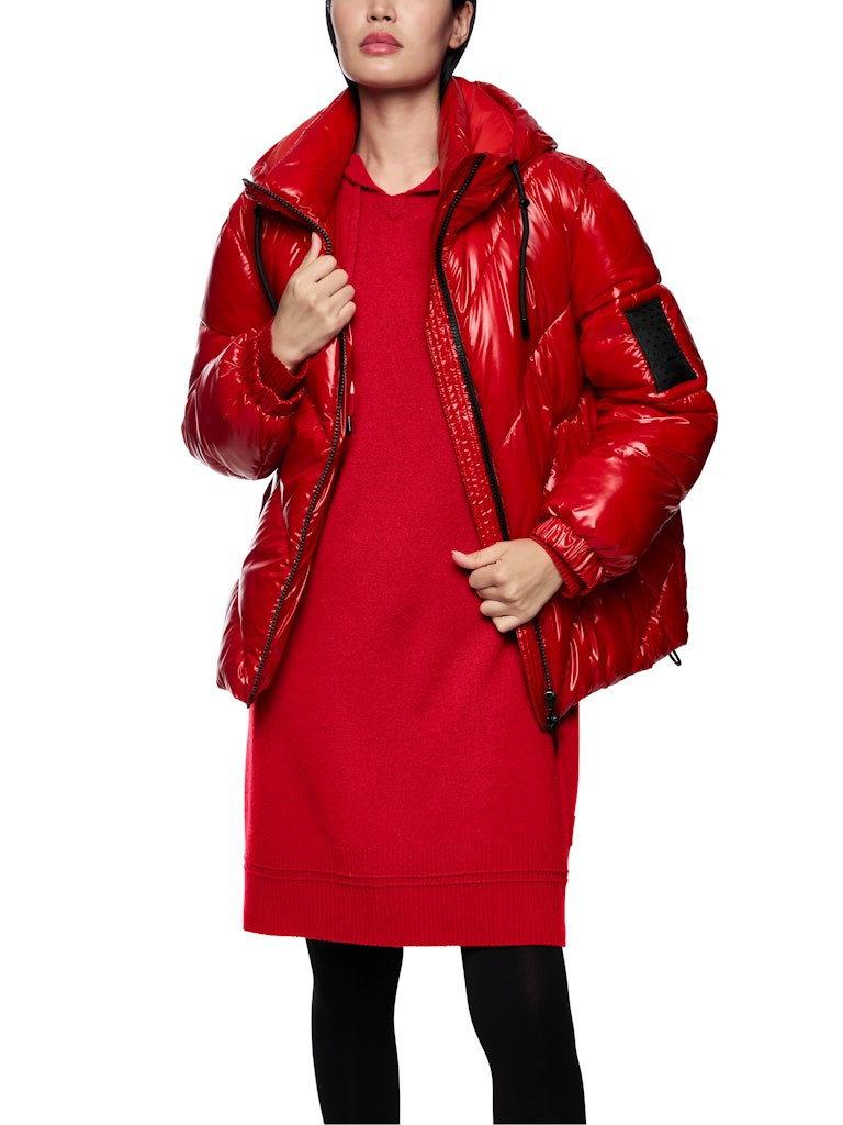 Marc Cain Strickkleid mit Kapuze in cranberry